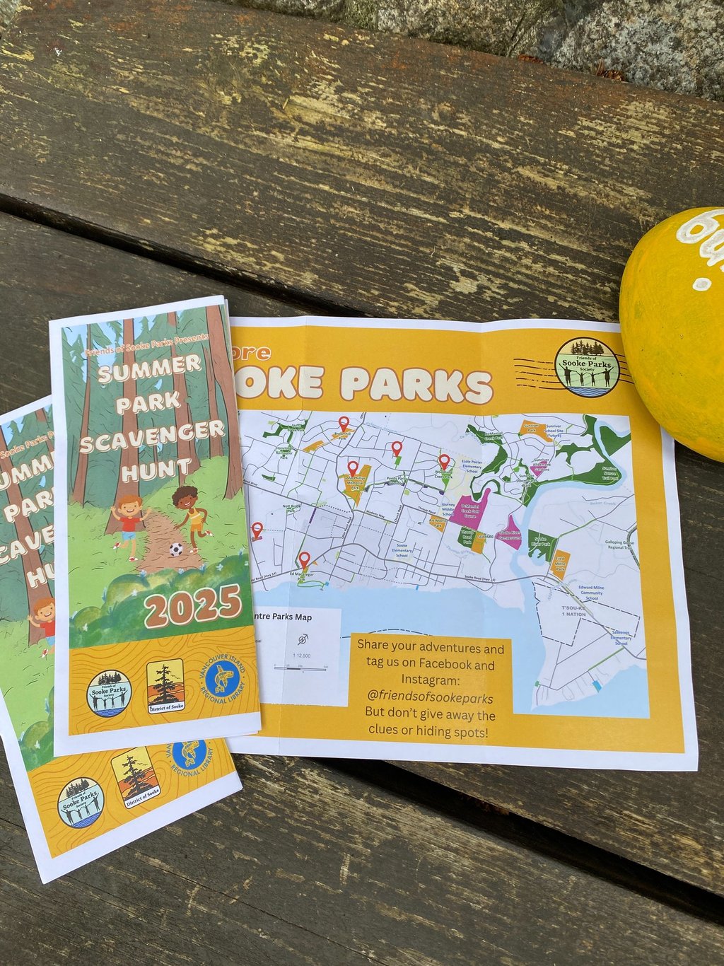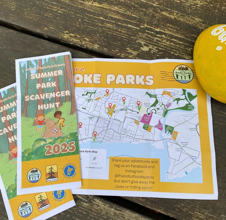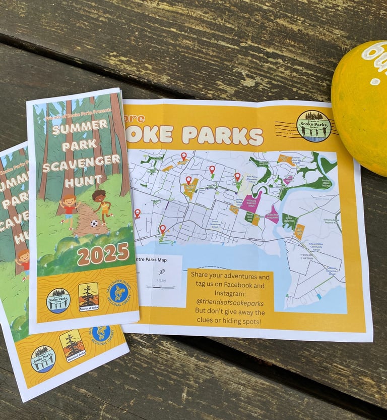 Your mission: Pick up your map from the Sooke Library or download it here. Each park on the map has a hidden rock with a word painted on it. Follow the clues to find the rocks and put the secret sentence together. Bring your completed parks map to the Sooke Library to collect your prize.