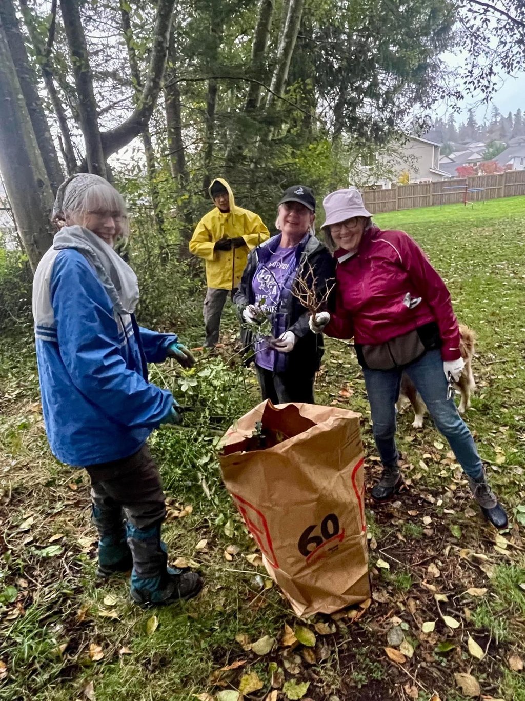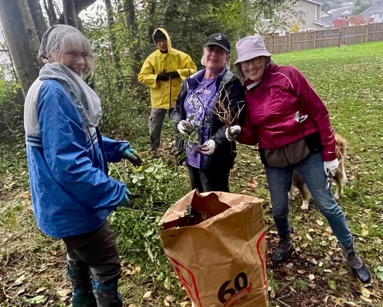 Eight soggy souls came out to clean up Pineridge Park and clear invasives on Wednesday, October 16. It was amazing to see everyone turn out in the rain, carrying hot chocolate and homemade muffins no less. Very heartwarming!