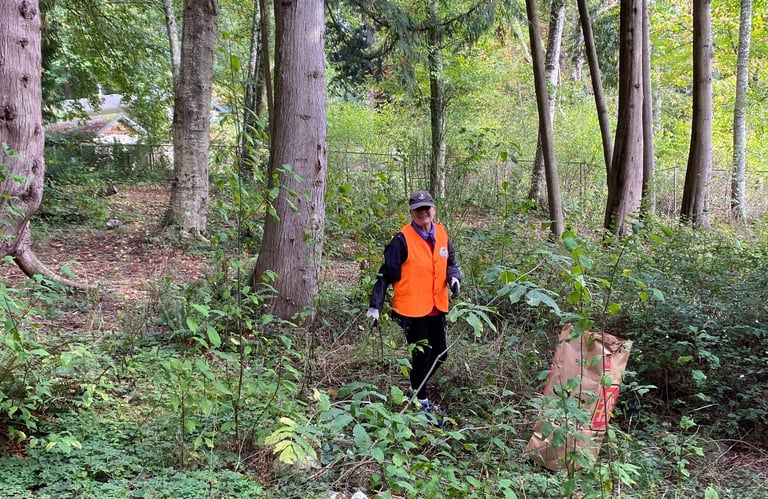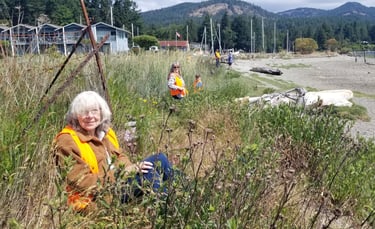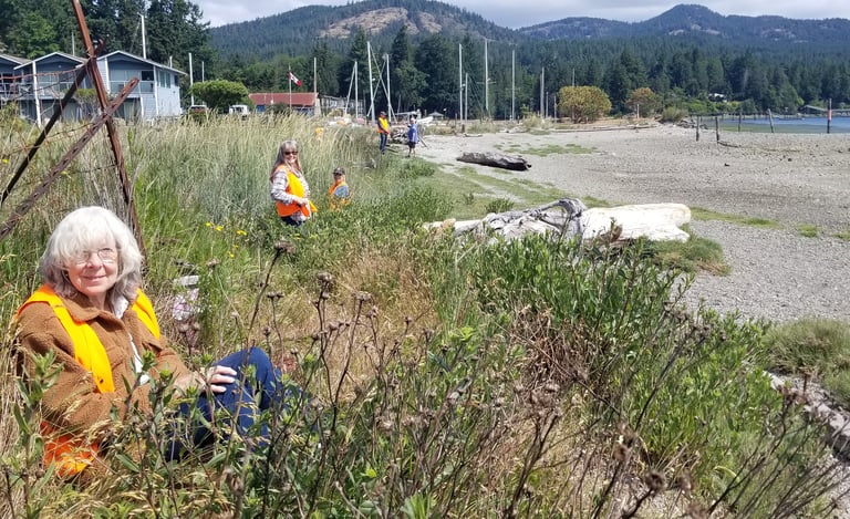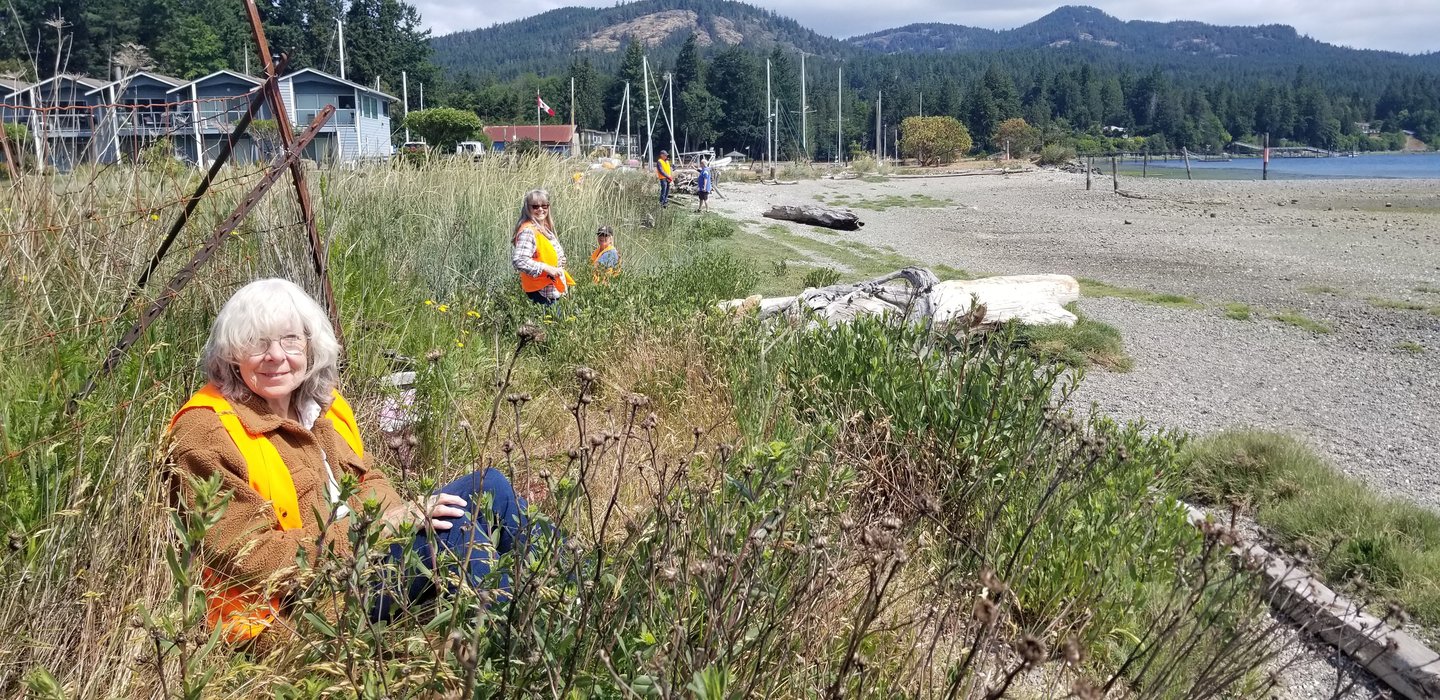 It was wonderful to see members of the Juan de Fuca Trail Society and the Sooke Garden Club pitching in and helping with this tedious but very important activity.