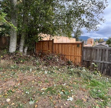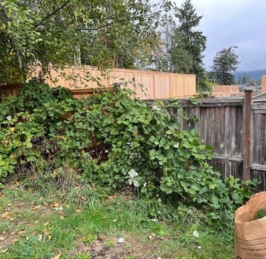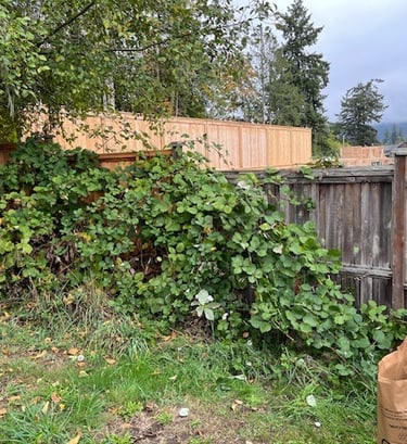 Two truck loads of invasives removed from Pineridge Park, including Broom, Daphne, Himalayan Blackberry, Ivy, Holly, and Periwinkle. We are making a difference! Check out the before and after photos along a section of fence.