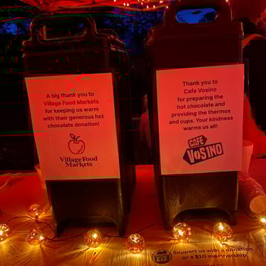 We’re grateful to Village Foods for donating the hot chocolate mix, and to Café Vosino for supplying thermoses and the labour to prepare it. It was a delicious success!