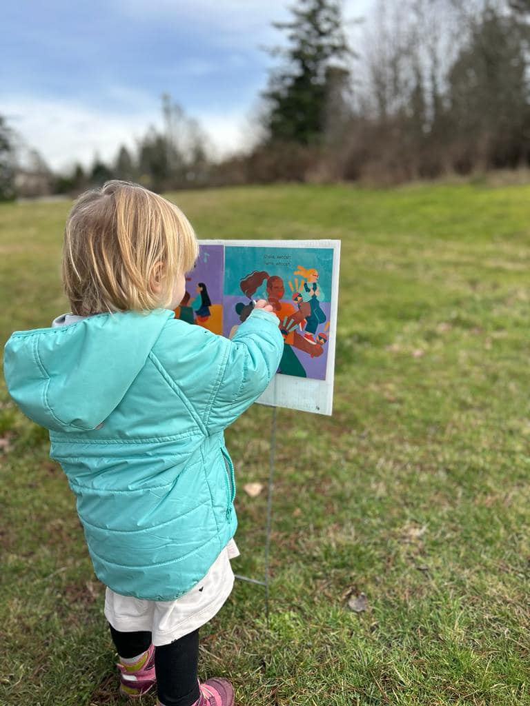 We chose to coordinate this pop-up story book walk in January as part of Family Literacy Week 2024 which is designed to celebrate adults and children reading and learning together across the province. The theme this year was “Let’s Have a Family Party!” Make food, sing songs, and play games.