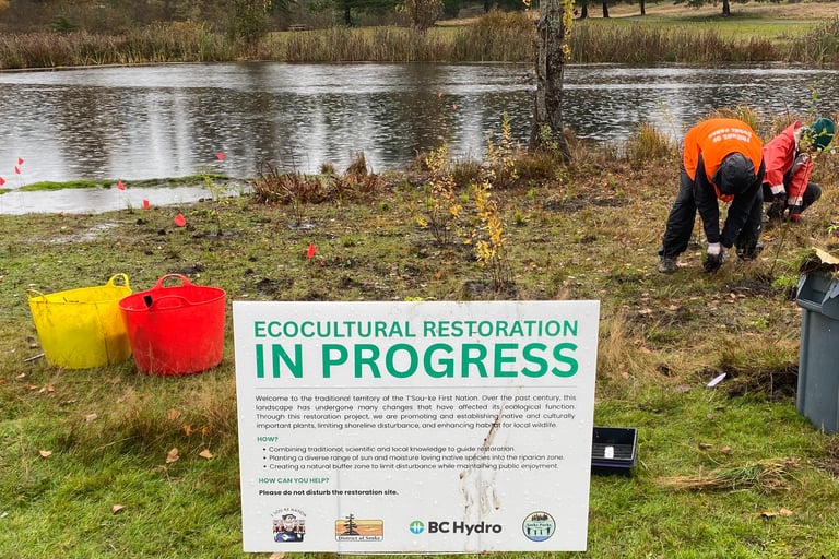 Friends of Sooke Parks were invited to participate in a restorative planting initiative at John Phillips Park, a collaboration with the T’Sou-ke Nation and the District of Sooke. With funding from the BC Hydro Regreening Grant, this partnership supports ongoing habitat restoration and ecosystem enhancement efforts in parks and streams around our community. Thank you, T’Sou-ke Nation and the District of Sooke, for including Friends of Sooke Parks! We love any chance to be together in our parks