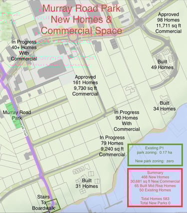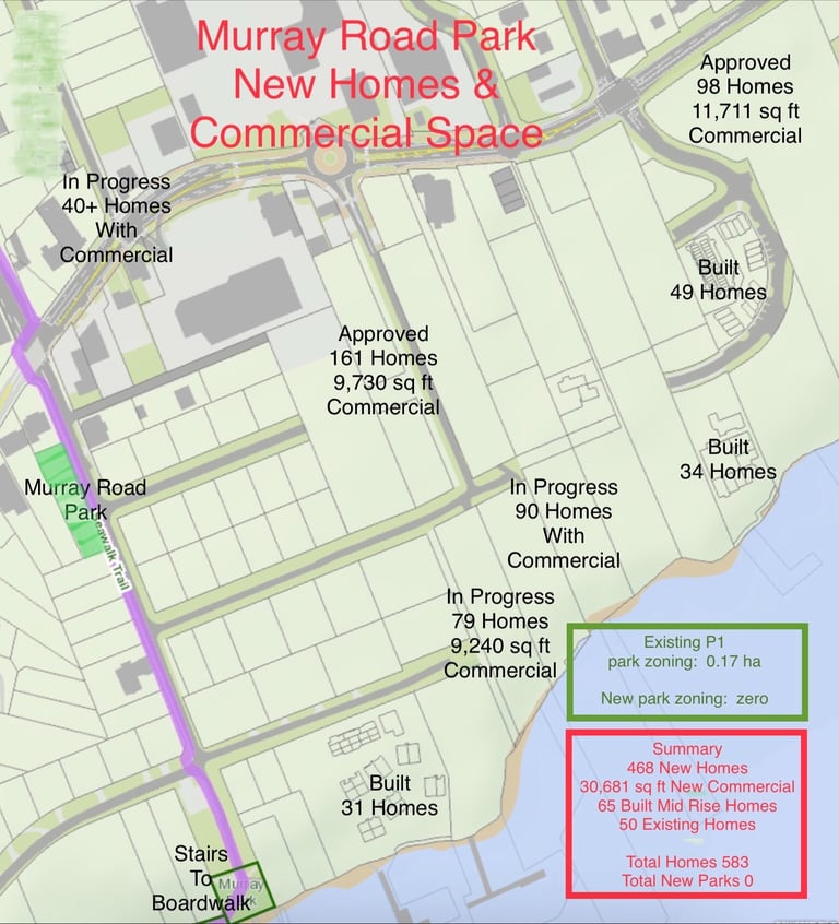 The Friends of Sooke Parks Society notes that developers were not required to include new green space as part of their approved zoning presumably because the park at 2008 Murray Road is listed as a park in the District's OCP and was intended to be maintained as a park.